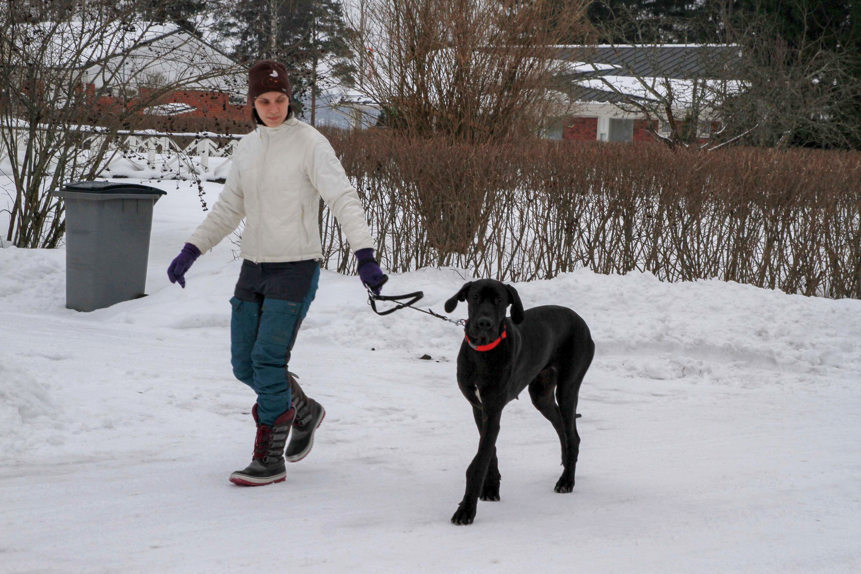 Tietenkin pitää muistaa, että minä puhun vuoden ikäisestä pennusta. Tokikin tämä on jätti-iso pentu. On aivan eri asia taluttaa hihnassa 15-kiloista kuin 55-kiloista vuosikasta kakaraa, vaikka molemmilta tismalleen samoja asioita vaadittaisiinkin ohituksissa. Fyysisesti niiden hallintaa ei vaan voi verrata, piste. Koirani on vasta pieni pentu, voisin toivoa ja odottaa että parin vuoden päästä ohitukset tehtäisiin jo ihan hyvin. Mutta kuinka monta asiaa ehdin pilata omalla käytökselläni ennen sitä? Neuvojen ja koirankoulutusvinkkien suossa on mahdollisuus valita vääriä ratkaisuja. Kuka kouluttaisi minua tekemään oikein, jotta osaan ohjata koiranpentuani toimimaan oikein tämän haastavan ikävaiheen yli?