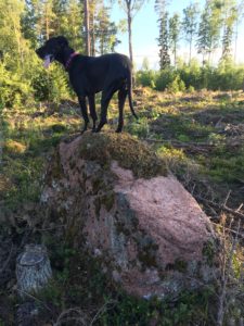 Tämä oli aika haastava kivi. Se oli korkeahko ja pyöreä malliltaan, eikä Nemi saanut ponnistettua, vaan tähän se oikeasti kirjaimellisesti kiipesi! En olisi koiraa pyytänyt tai “pakottanut”, mutta se itse näytti hyvin päättäväiseltä tämän murikan valloittamisen kanssa. Ja hienosti onnistui!