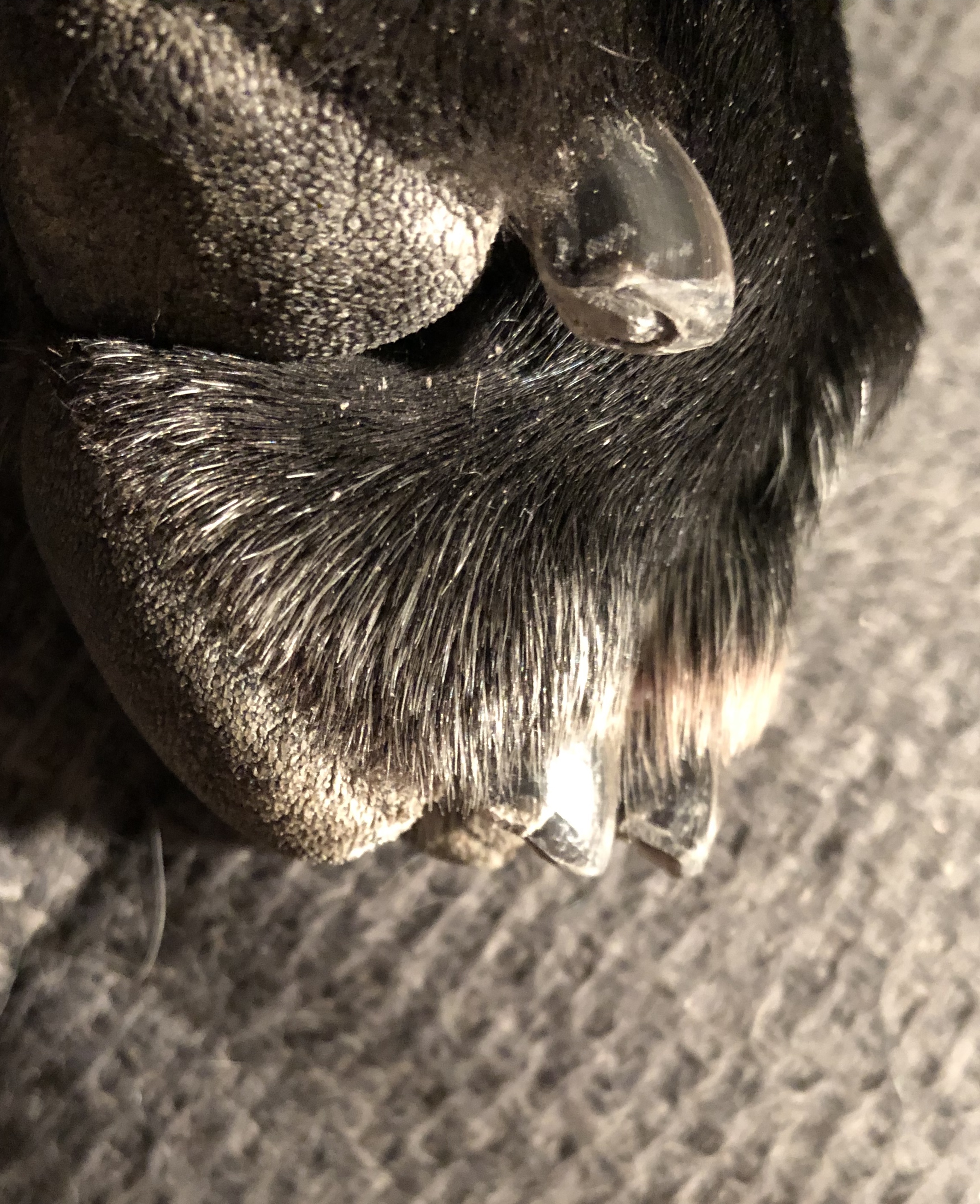 Trimmerin hiljainen hurina aiheutti sen verran kiinnostusta, että nenä oli kiinni laitteessa ensimmäiset sekunnit, jotenka minä en meinannut päästä ollenkaan työn touhuun – etenkin, kun samaan tarkastelupisteeseen tunki nenänsä myös Igor :D. Kerran, pari alkuun Nemi yritti nykäistä jalkaansa pois trimmerin käsittelystä, mutta sitten – en ole kertaakaan, koskaan aiemmin, milloinkaan saanut tehdä Nemin kynsien kanssa näin tarkkaa ja keskittynyttä työtä kynsien leikkuussa! Siis vau! Sain käännellä Nemin varpaita, hioa yhtä kynttä vähän tuolta ja toista täältä, eikä Nemi ollut moksiskaan.