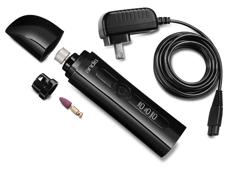 Laite on, ensinnäkin, Andis CNG-1-kynsitrimmeri. Akkukäyttöisen laitteen käyttöaika on kolme tuntia, siinä on turbonappi (jota suositellaan käytettäväksi isoilla koirilla) sekä irrotettava suojakotelo pienten ja keskikokoisten kynsien käsittelyyn. Mukana tulee hiomakivi, viimeistelyyn tai tarkkaan työhön tarkoitettu pienempi hiomakivi sekä laturi. Hiomakiviä saa lisävarusteena. Laitteen ääni on itse asiassa todella hiljainen, ja hiotessakaan ääni ei ole paha.