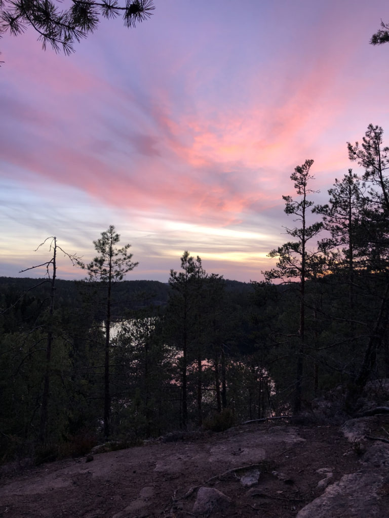 Paluumatkallamme hämärä alkoi jo laskeutua ja tarjosi Ihan Kelpuutettavia auringonlaskukuvia hieman korkeammalta katseltuna. Saavuime kuitenkin leiriin juuri sopivasti ennen pimeän tuloa, vain jotta pääsimme notskipaikalle valmiiden tulien äärelle paistamaan makkaraa ja paahtamaan vaahtokarkkeja 🙂