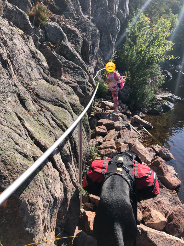 Meidän konkkaronkkamme isoine kantamuksinemme aiheutti hilpeyttä toisissa ulkoilijoissa – varmasti eniten keräsi huomiota Nemi oman täyteen pakatun rinkkansa kera, ja se kirvoitti taas lukuisia keskusteluita, ihmettelyä ja pyyntöjä saada valokuvata tätä ilmestystä. Ihania olivat myös vastaantulijoiden sanattomat hymyt. 🙂
