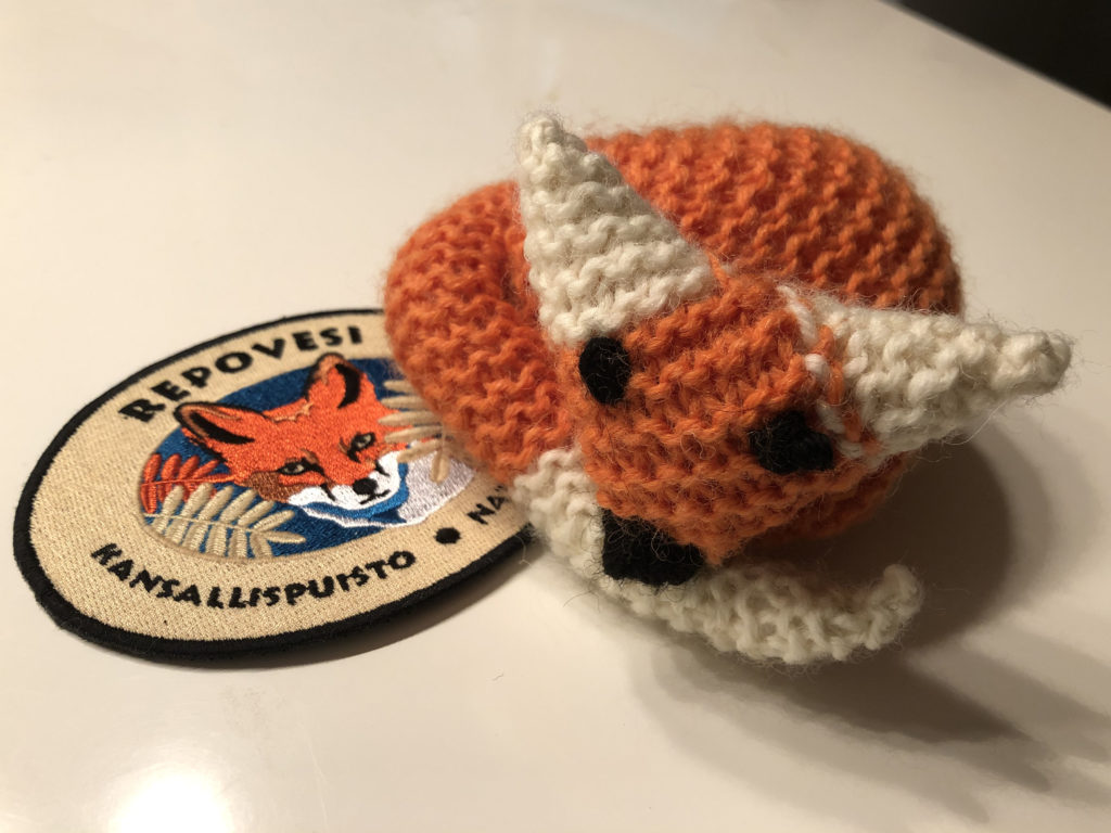 Lapinsalmen parkkipaikalta löytyy muuten nykyään täyden palvelun kioski – perus herkkujen lisäksi valikoimasta löytyi jos minkänäköistä ruokaa ja suolaista pikkusyötävää, ja mekin saimme mukavasti vatsat täyteen ennen parin tunnin pituiselle kotimatkalle lähtöä. Kioskilta sai ostettua myös Repovesi-tuotteitakin, kuten kansallispuiston kangasmerkin sekä pienen, neulotun kettuhahmon. Meillä Repoveden merkki löytyikin jo omasta takaa, mutta T:lle ostimme ihan oman kangasmerkin.