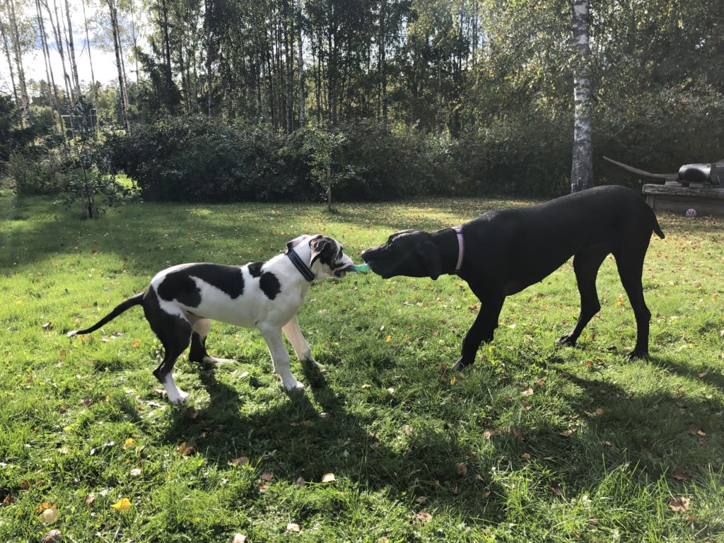 Meillä kävi tänään taas uusi koirakaveri 🙂 Tässä on Ilu, 19-viikkoinen doggintaimen.