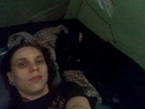 Nemi otti teltan haltuun kuin vanha tekijä. Oma peti tunnistettiin välittömästi, ja Nemille ominaiseen tyyliin ylimääräiset pyörimiset ja härvääminen jäi minimiin: pedille kierähdettiin maaten, ja siihen sitä sitten jäätiin. Suuri onni oli, kun Nemi sai nukkua ihan Oman Äitin vieressä; milloin oli kasvot kiinni omissani, milloin vain tassu kosketti kättäni. <3
