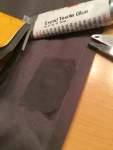 Kaikkinensa telttailuyö sujui mainiosti: vaikka minäkin heräsin yöllä (useasti) ja jouduin nousemaan ylös makuupussistani ja poistumaan teltasta, pentu odotti hienosti pedillään. Kaikki sujui siis todella hienosti – ihan viime hetkeen, ennen kuin meidän piti poistua sisälle aamupalalle: Hyvin Vahvasti Hereillä Olevan Pennun teki mieli nujuttaa jotain, – tässä tapauksessa oman peittonsa kulmaa, – mutta kuinka ollakaan, minun ilmatäytteinen patjani jäi peitonkulman ja terävän naskalihampaan väliin. Kuului “tsup” ja sitten pitkä ja hiljainen “pfffffffffff…..“. Eih, ihan uusi retkeilypatja! Onneksi patjan mukana tuli myös laadukas paikkaussarja, ei muuta kuin leikkaa-liimaa-askartelemaan. Paikasta tuli kyllä oikein hyvä ja pitävä. 🙂 Tai no, todelliseen testiin paikan pito pääsee noin kolmen viikon päästä…