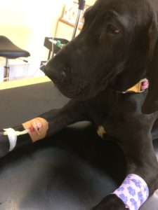 Ke-to 21.-22.6. Keskiviikkoaamuna palattiin lääkäriin jatkamaan nesteytystä ja röntgenkuviin. Koira oli erittäin flegmaattinen ja kipeä, kuume koko päivän välillä 39,4-40,3. Röntgenkuvista nähtävissä oleva tulos oli selkeä: HOD.