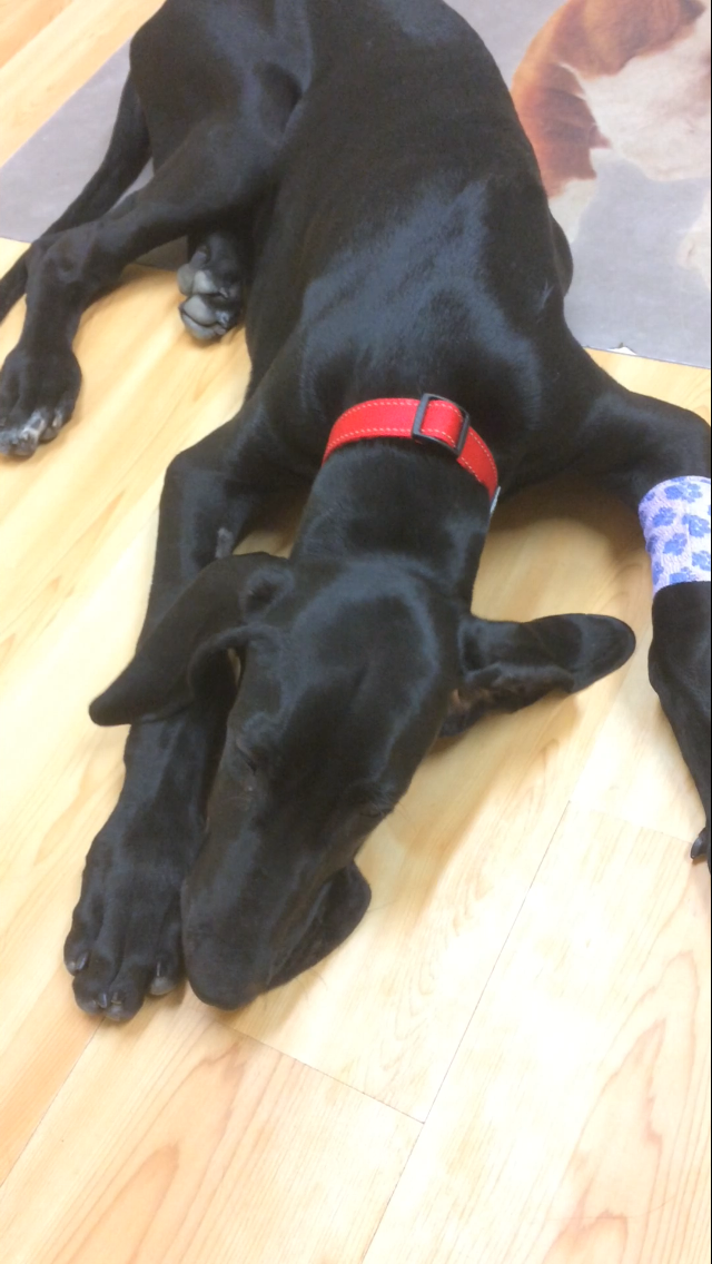 Ti 20.6. Seuraavana päivänä helvetti pääsi irti. Nemi oli koko päivän erittäin väsynyt ja kipeä, ja sillä oli kuumetta jossain 40 kieppeillä ja ylikin. Iltapäivästä soitin eläinlääkäriin ja pentu otettiin vastaan heti (tässä kohtaa Nemi piti kantaa sylissä) ja sitä alettiin tutkia ja hoitaa; verikokeet, pentu tippaan ja kipulääkettä. Nemillä havaittiin olevan kosketusarkaa särkyä pitkissä putkiluissa sekä ranteiden kasvupateissa.