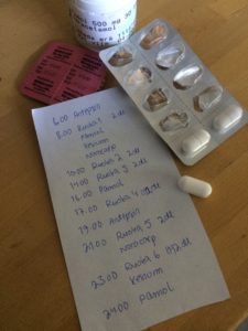 Päivän ruokinta- ja lääkintärytmi on aikamoinen.
