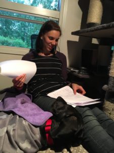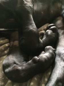 Ti 4.7. Seuraava eläinlääkärikäynti. Pentu oli täysin jalaton ja sitä kannettiin koko aamu ulos-sisään-autolle-lääkäriin. Patit sen etujaloissa olivat tennispallon kokoiset. Verikokeista havaittiin, että maksa- ja munuaisarvoissa ei ole tapahtunut muutoksia, joten kuumetta alentavaa voidaan edelleen jatkaa. Käytännössä hoitomuoto jatkuu täysin samana: kuumetta alentavaa parasetamolia, Norocarp vaihtunut Rimadyliin (Nemi tykkää sen mausta enemmän) ja vatsaa suojaava Antepsin. Antibioottikuuri Kesium syötettiin jo loppuun.