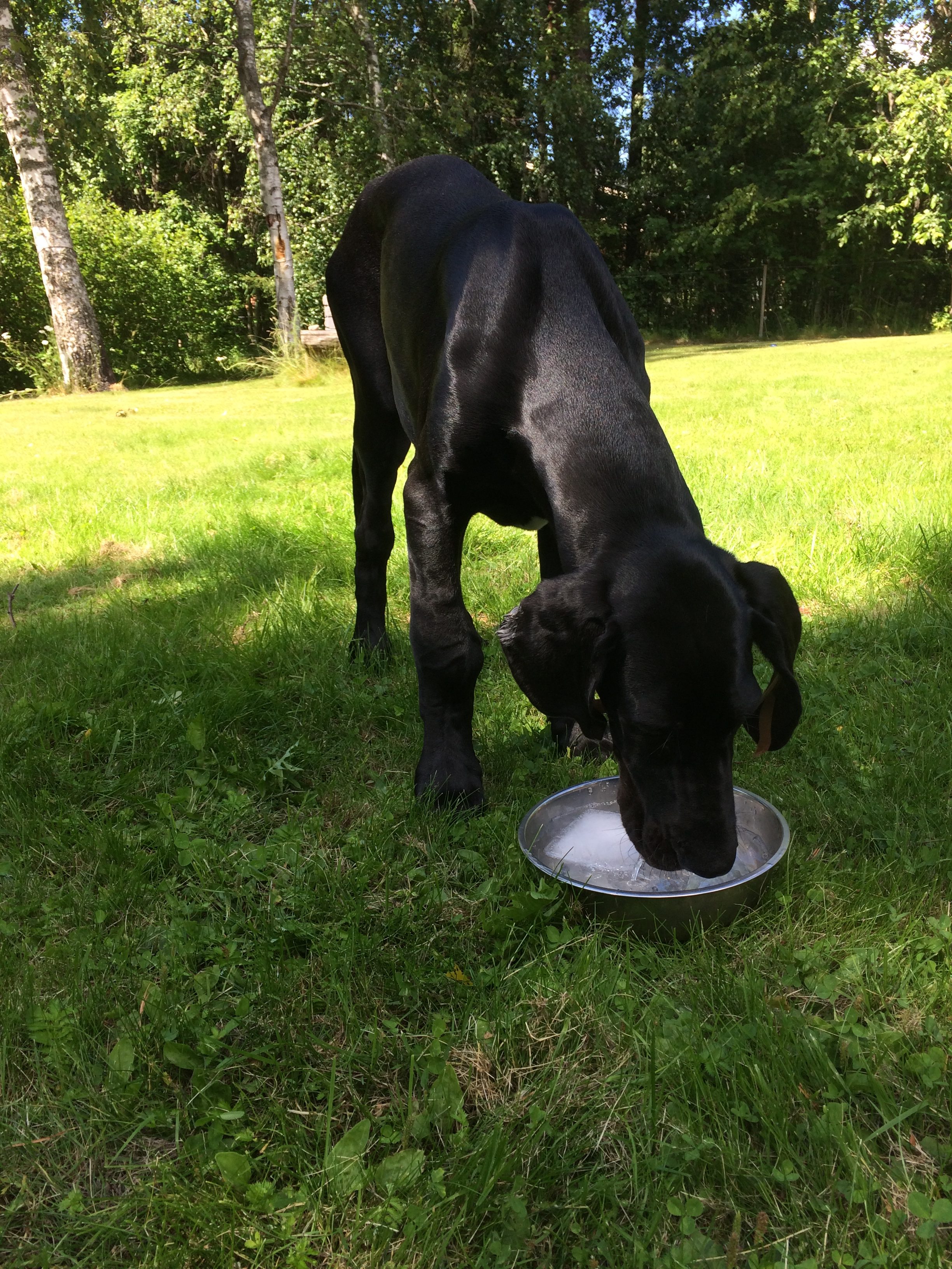 Ke-to 5.-6.7. Nemi oli täysin jalaton maanantai-illasta torstaipäivään asti. Se oli niin kipeä, että se ei esimerkiksi suostunut käymään pissalla kuin äärimmäisen pakon edessä – neiti kun ei suostunut ns. ”laskemaan alleen”, vaan halusi pissiä tavallisesti kyykyssä. Tämä on varmasti vaatinut tahdon lujuutta kivun läpi, seistä edes etujalkojen varassa samalla, kun minä tuen koiraa vatsan alta. Lopulta, kun etujalat alkoivat kantaa paremmin, hädillä käynti sujui koiran takaosaa kannatellen samalla kun takajalat vetäytyivät kippuraan kropan alle, kuin halvaantuneena.