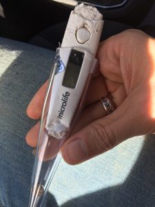 Nyt meillä ollaan tehty minun koirahistoriani paras saavutus. Kuumemittari.
