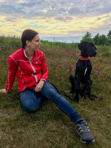 Nemi-prinsessa kuitenkin tuumasi, ettei ole veteen tulossa. Osasin tämän arvata, joten ei muuta kuin pentu syliin ja kävelemään vedessä syvemmälle. Kun olin riittävän syvällä, laskin koiran varovasti veteen tukien sitä vatsan alta ja selästä pelastusliivin kahvasta. Nemi ui kertakaikkisen hienosti, rauhallisella ja hyvällä tekniikalla. Vedessä vietimme aikaa reilun viisi minuuttia. Rannalle päästyämme huomasin Nemin palelevan valtavasti; pikainen pyyhekuivaus ja pikapikaa kotiin. Kylmänhorkka jäi kuitenkin päälle ja rauhoittui vasta tunnin kuluttua, vaikka koira oli kääritty lämmittäviin viltteihin. Uni vei myös pienen mennessään ja jalat viuhtoivat kovasti unissaan; taisi olla uintiharjoitukset vielä unissaankin.