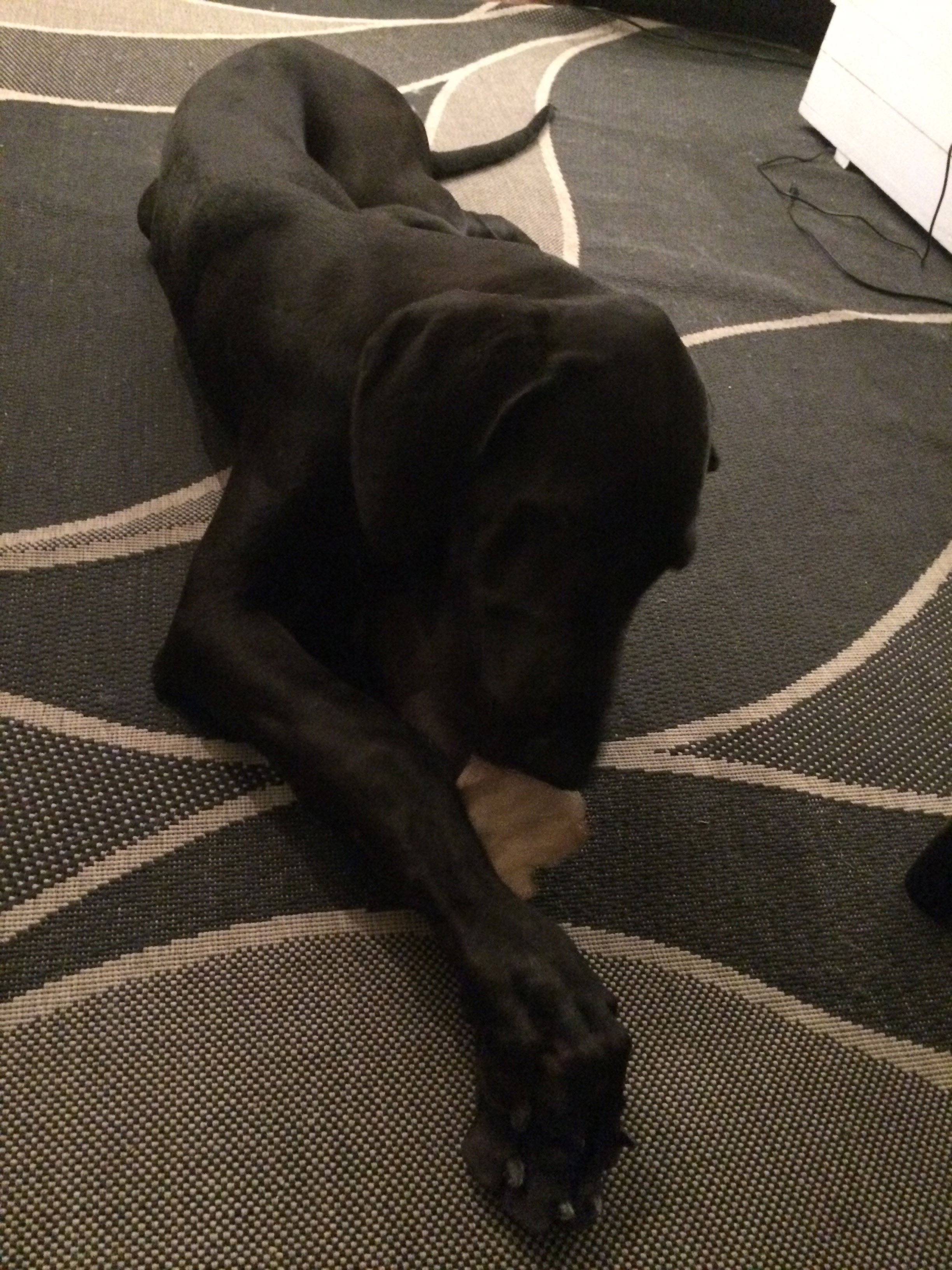 Kävimme tapaamassa reilu viikko takaperin fysioterapeuttia, jonka mielestä Nemin kuntoutuksessa pitää eniten kiinnittää huomiota nyt takajalkojen liikkeen parantamiseen; Nemin pitää oppia taas varaamaan painoa paremmin takaosalleen ja venyttämään takaliikettään taaksepäin. Saimme kotiläksyksi jumppa-, venyttely- ja tasapainoliikkeitä sekä hyviä ajatuksia sopivasta liikunnasta Nemin kanssa. Käynti oli aivan erinomainen ja seuraava aika onkin jo varattuna parin viikon päähän. Nykyisellään Nemi venyttelee seisaaltaan etukroppaansa ja takajalkojaan hyvinkin makeasti makuuasennossa!