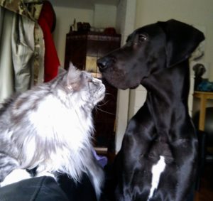 Nemin arkea täällä kotona sulostuttaa kaksi maine coon -kissaa. Voisin kuitenkin kuvitella väittäväni, että tunne sulostuttamisesta on yksisuuntainen: molempien kissojen mitta taitaa olla melko täynnä koiranpentua tällä hetkellä. Suurimman osan päivästä yhteiselo sujuu toki hienosti. Jopa niin hienosti, että yhdessäkin pystytään ja halutaan olla. Välillä ne pennun kierrosluvut vaan nousevat kissojen mielestä vähän liian korkealle.