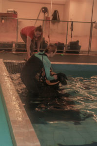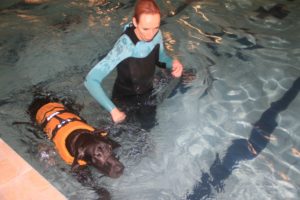 Hyvinkään Koirauimala Onnenkoirassa on puhdasta ja ihanaa, 23-asteista vettä ympäri vuoden. Olimme varanneet Nemille myös uittajan; uittajan avulla koira saadaan turvallisesti altaaseen ja hän osaa ohjata ummikkouiputtelijaa toimimaan vedessä oikein.