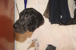 Nemi pääsi pesupaikan kautta omaan loosiin kuivattelemaan ja katselemaan hallin menoa. Olen äärimmäisen iloinen koirani käytöksestä hallissa; omaa vuoroa odotellessamme se katseli hiljaa ja hötkyilemättä pleksin toisella puolella uivia akitoja – parhaillaan kirsut olivat vastakkain pleksin molemmin puolin. 🙂 Uinnin jälkeen Nemi oli toki aivan rättiväsynyt, mutta sille ei esimerkiksi jäänyt niin suuria kierroksia päälle, että se olisi läähättänyt tai stressannut tilannetta ja paikkaa. Olen todella tyytyväinen.