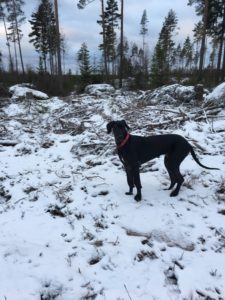Jouluaamun aamupuurojen laskeuduttua mahoissa, lähdimme metsälenkille. Metsäily valoisan aikaan on edelleen harvinaista herkkua, joten mahdollisuuden tultua lenkki tehtiin pitemmän kaavan kautta. Pikkumusta nautti lenkistä koko koiran mitalta. Tämä on yksi tärkeimmistä lahjoista, mitä koiralle voin antaa: kiireetön ja hyväntuulinen metsälenkki, aikaa yhdessä <3