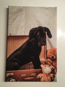 Tähän kohtaan lienee paikallaan esitellä toinenkin Oh My God! -juttu. Nimittäin, ihanat mimmit töistä olivat hankkineet minulle joululahjan: he olivat teetättäneet Nemin vauvakuvasta canvas-taulun! Nemi on kuvassa vähän vaille 14 viikkoa vanha, ja kuva on napattu valokuvauspäivässä Loviisassa. Ja yhtään en osannut aavistaa tällaista joululahjaa: saattoi siinä silmäkulmakin kostua, kun lahjakassin avasin töissä. Tämä todellakin osui ja upposi, KIITOS Mimmit upeasta lahjasta! <3