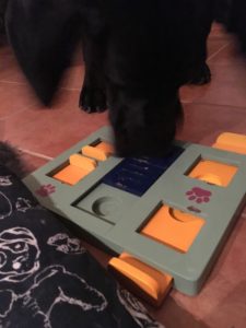 Ja sitten kun vielä eilen minä olin ns. “pelistä pois” vatsataudin vuoksi, tarjoilin koiralle puuhaa aktivointipelin muodossa. Voi sitä nuuskutuksen määrää, kun pienen koira nenä kertoi, että lelussa on vielä nameja jäljellä…! Peli on hyvä keino saada koiran pääkoppaa väsytettyä, jos fyysinen väsytys ei syystä toisesta ole mahdollista.