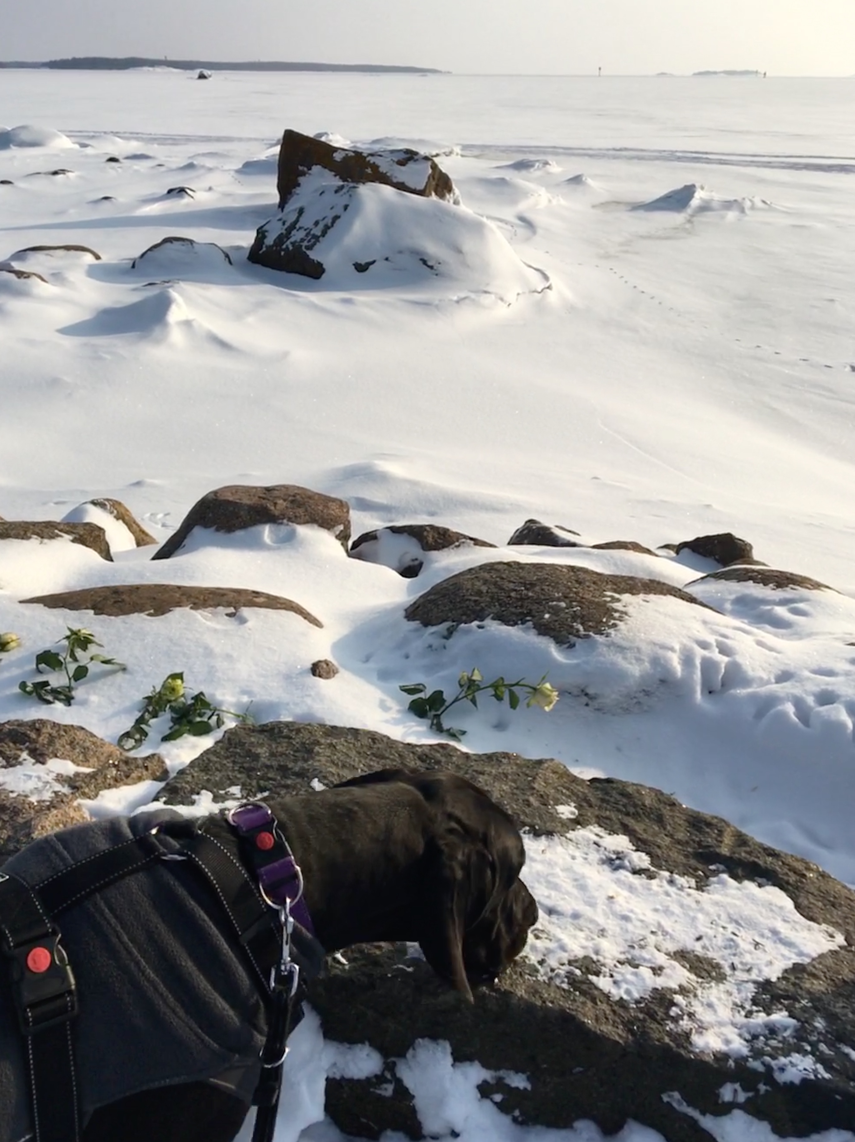 Toissa viikonlopun sunnuntai oli täydellinen pakkaspäivä ulkoiluun. Erinäisiä ulkoiluvaihtoehtoja mietittiin alkaen Ukko-Kolin valloittamisesta, ja yksitellen niitä jouduttiin karsimaan pois kunnes jäljelle jäi tuttu ja aina yhtä mukava Katariinan meripuisto Kotkassa. Sieltä päätettiin tehdä lenkki Sapokkaan ja takaisin autolle. Matkaa tuli viitisen kilometriä.