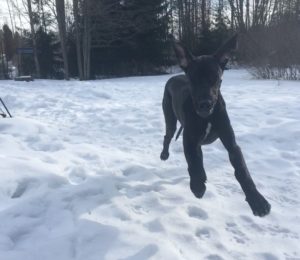 Taudin talttumisesta kertoo myös energisöityvä koira 🙂 Puuhaa ja tekemistä alkaa riittää, ja mikäs sitä nautiskellessa auringonpaisteessa pikkupakkasessa 🙂 Tässä taidonnäytettä hihnalenkin jälkeisestä pihahepulista, voi luoja 😀