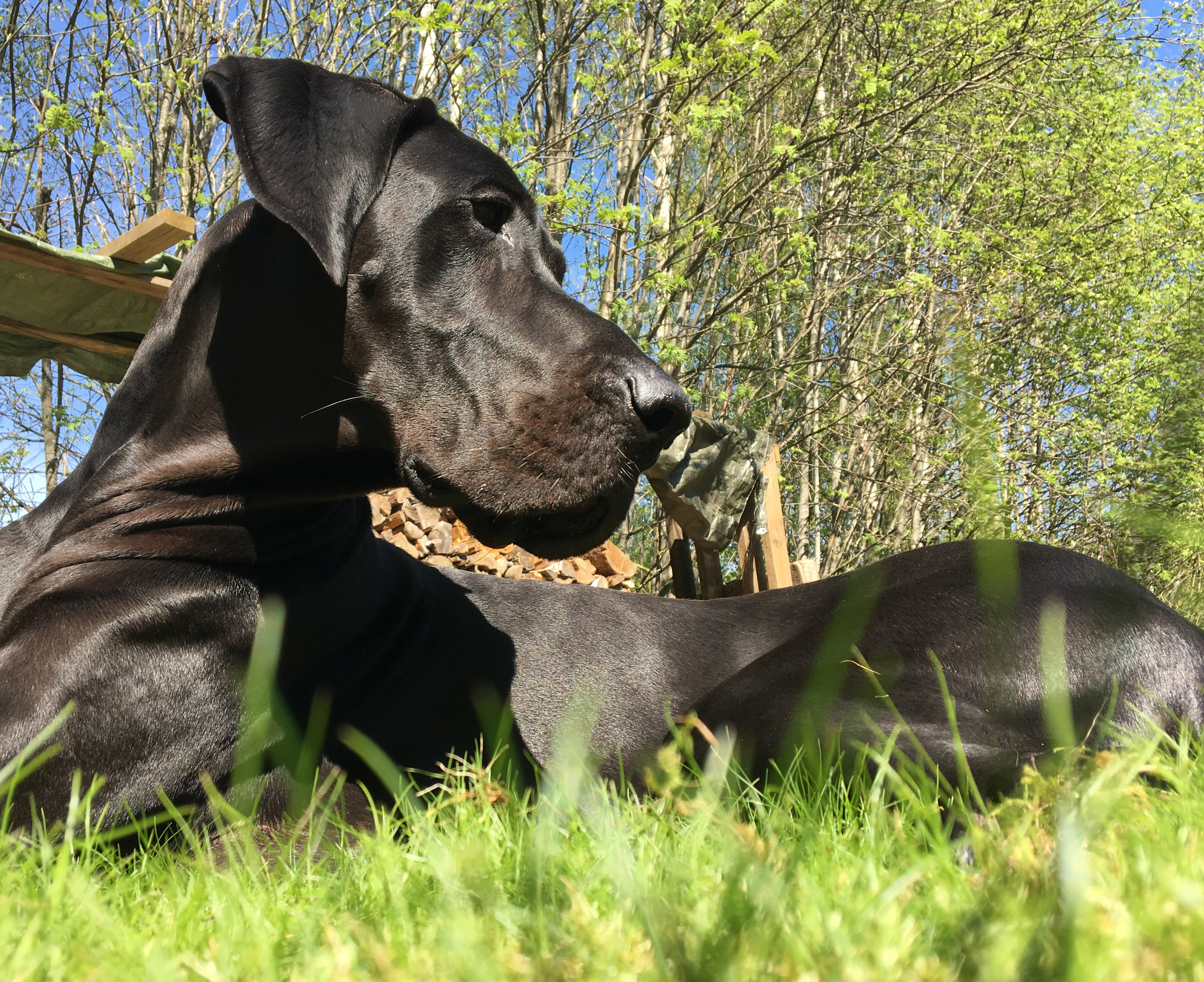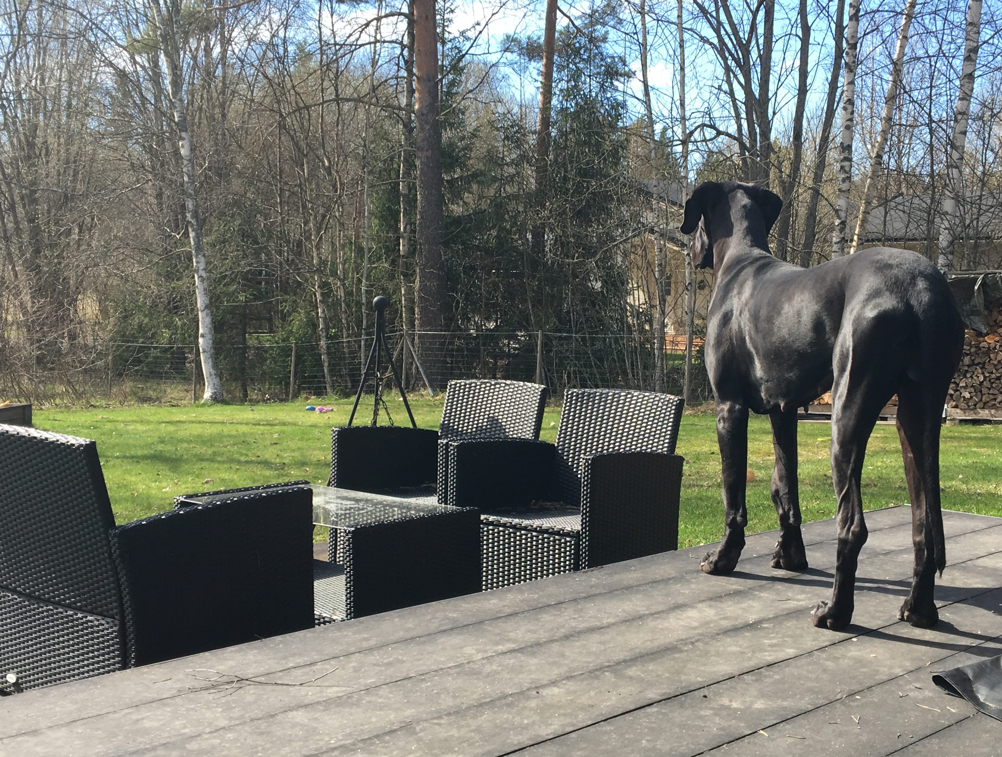 Vaikka Nemi on päässyt jo tällaiseen Kypsään Junnukoiran ikään, niin kyllä sillä koiranpen fiksulla koiranuorukaisella on vielä välillä paljon pohdittavia asioita. Viimeisin oli se, että meidän pihallamme oli tunkeutuja. Iso ja Vaarallinen Nokkaeläin. Sitä ei uskallettu lähestyä liian nopein liikkein, vaan se yritettiin häätää (turvallisen välimatkan päästä) tuijottamalla ja vähän ehkä pöhisemällä.