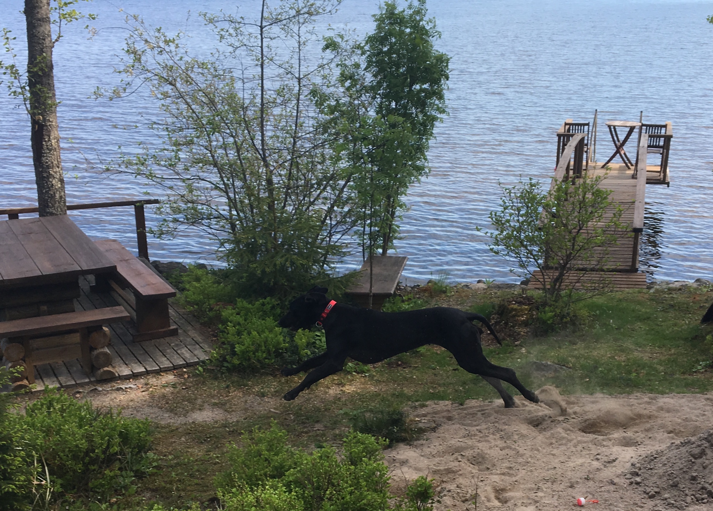 Täytyy kyllä sanoa, että kun ensimmäisenä iltana mökillä katselin koiran onnellista ja päätöntä doggihepulointia pitkin pihaa (sisältäen esimerkiksi kolme rundia ihan vaan mökin ympäri), niin kyllä sitä meinasi onnen kyyneleet valua poskia pitkin. Viime kesänä ei vauhti, voimat ja terveys ollut mökkikäynneillämme ihan tuollaista… Voi että olen onnellinen, että koira on tervehtynyt!