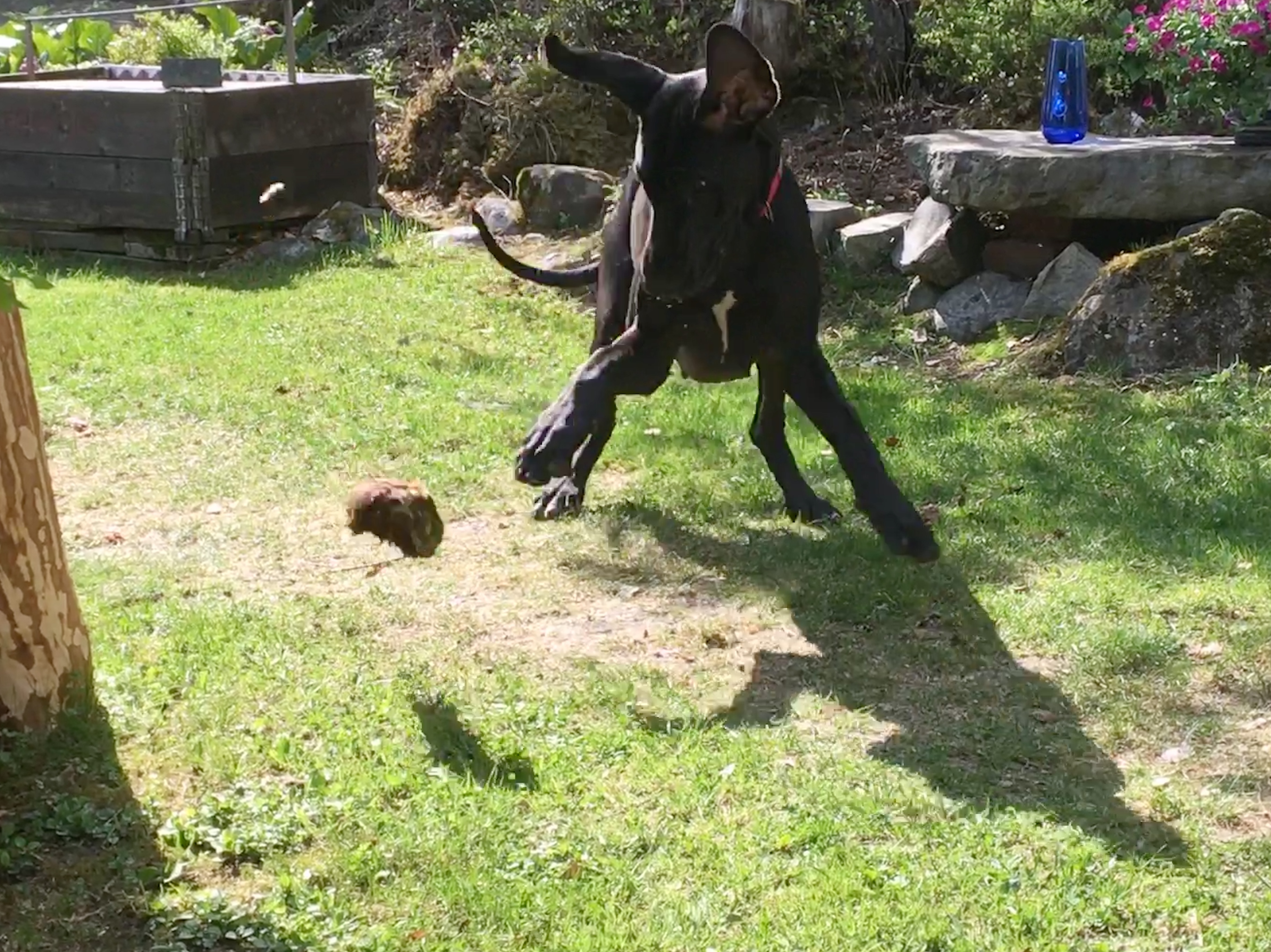 Vapaa viikonloppu mahdollisti mökkikauden aloituksen myös meille. Perjantai-iltana minä ja Nemi suuntasimme mökille Päijänteen rannalle, ja ah että ollaan nautittu! Pikkumusta on juossut hervottomia hepuliralleja pitkin tonttia ja ehkä vähän sen ylikin, köllötellyt varjoissa, järsinyt keppejä, seuraillut valkoposkihanhien kevättouhuja ja.. mitäs muuta. Nyt tuolla sohvalla ainakin makaa melkoisen väsyneen oloinen otus.