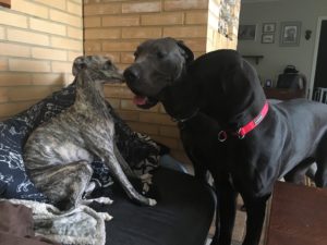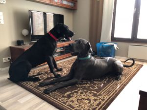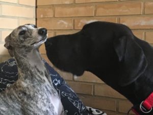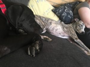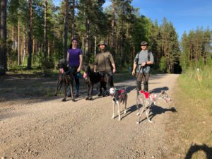 Hämeenlinnan käynti oli nopea – Mikolla on yksi tietty kauppa, jossa pitää saada käydä tasaisin väliajoin, – jonka jälkeen suunnattiin Katjan ja Janin luo ja päivä oli jo kääntymässä iltapäivän puolelle. Nemi pääsi tapaamaan Hemppaa sekä whippet-lapsukaisia Latea ja Iisaa. Iisasta tulikin pian ihan lempparisohvakaveri.