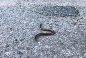 Pikkiriikkinen vaskitsa lämmitteli keskellä asvalttia.