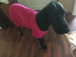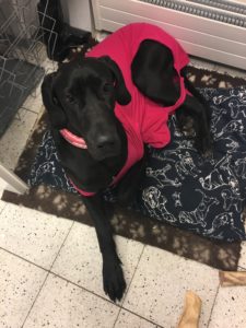 Ja niinhän siellä haavassa oli sitten kunnon reikä, eli revennyt tikki (mahdollisesti useampi? Tästä en ole ihan varma). Keskusteltuamme vaihtoehdoista päädyttiin operoimaan kohta uudestaan ja tarkistamaan samalla, ettei sisällä ole alkavia tulehduksia (ei ollut, onneksi!). Iltapäivällä hain kotiin tokkuraisen koiran, jolla oli nyt 19 tikin sijasta 24 uutta tikkiä mahassaan.