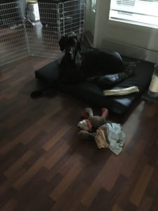 Jos Hertta oli vanhemmiten herkkä ”niskaan kaatuville asioille”, Nemi on nyt jo herkkä samalle asialle – tämä neiti on pehmeä ja rauhaa rakastava yksilö. Siksi en Nemin kohdalla ole edes harkinnut kattilankansirämistyksiä. Lähtökohtaisesti pöydiltä ollaan tietenkin siivottu pois kaikki syötäväksi kelpaava. Mutta matkan varrella koira on hakenut pöydiltä kaikkea muutakin kuin vain syötävää-syötävää – muun muassa leikkuulautoja, puisia kauhoja ja aterimia, kelmurullan, shampoopullon.. Mitähän vielä. Vaikka mitä. Piti siis keksiä muita keinoja. Keksin kokeilla pureskelunestoaineen suihkuttelua kaikille pöytäpinnoille. Tämä kyseinen tuote on toiminut siihen tehtyyn tarkoitukseen Nemillä pikkupentuaikoina, niin ajattelin ja toivoin sen tehoavan myös pöytien ratsaamiseen. Samanaikaisesti koiralle on tarjolla puruluita leviteltynä/piilotettuna ympäri taloa, samoin kuin sillä on pääsy omien lelujen luo. Uusia luita ja lelujakin on ostettu. Mutta ei.