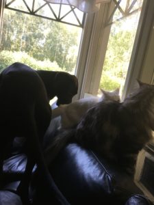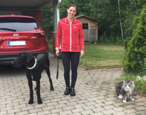 Yleisesti ottaen Nemi on ihan todella hienosti kissojen kanssa. Onhan tämä oletettavissakin, kun se on koko ikänsä kissojen kanssa kasvanut. Nemi ei hätkähdä kissojen äänistä ja touhuista, ja kissojen iltavilli-formulatkaan eivät saa Nemiä lähtemään niiden perään. Kissat kulkevat sujuvasti Nemin jaloissa ja hännät liuhuen ne alittavat Nemin mahan alta tai jalkojen välistä. Jos Nemi vain saisi vielä iiiihan vähän lisää malttoa välillä hieman nopeisiin liikkeisiinsä, niin uskon että Nemistä ja Lumista saadaan vielä kainaloikkain nukkuvat tyttöset. 🙂