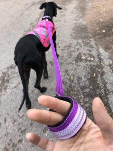 Nyt tiedän jo sen verran, että tätä pantakikkaa ei tarvitse käyttää jalankulkijoita ohittaessa. Pyöräilijätkin on ihan OK. Kun näköpiiriin ilmestyy toinen koira, tarkkailen vastaantulijan kehonkieltä, äänenkäyttöä ja sitten Nemin kehonkieltä, ja otan koiran tarvittaessa haltuun lähelleni. Pyrkimys on tietenkin päästä tässäkin siihen normaaliin ohittamistapaan, mutta annetaan nyt vielä vähän lapselle aikaa kasvaa 🙂
