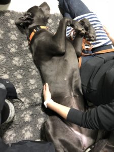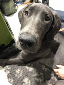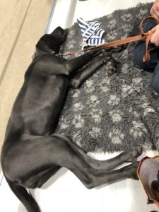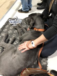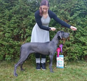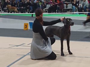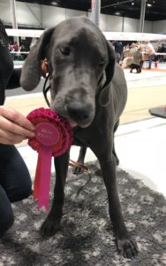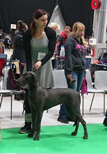 Näyttelyyn oli osallistunut kaksi sinistä pentua, molemmat pikkupentuluokassa olevia narttuja. Aluksi Hekla meinasi vähän pyöriä ja sinkoilla kehässä, eikä sen jalkojakaan olisi saanut oikein asetella. Niina kuitenkin hakeutui hienosti Heklan näköpiiriin, minkä jälkeen pentu pysähtyi kuin seinään ja jäi seisomaan itselleen tyyppilliseen, upeaan ryhdikkääseen asentoon. Ja hienostihan se sitten meni – PPEK1, KP ja ROP-pentu! Sitten päästiin odottelemaan isojen kehien alkamista…