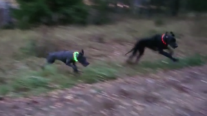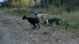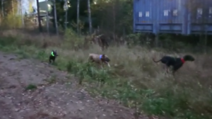 Ajelimme takaisin Niinalaan, heti kun vain näyttelypäivä osaltamme oli ohi. Pihalla nappasimme vielä viralliset palkintokuvat Heklasta, kaappasimme isot likat sisältä ja lähdimme lähimetsään tarjoamaan koirille vähän liikuntaa. Ja ai jessus että ne muuten pinkoivat kovaa! 😀 Edelleen mä ihmettelen suunnattomasti sitä, MITEN nuo eläimet pystyvät juoksemaan metsikössä, jossa on puita, kantoja, kiviä, juurakoita, kuoppia, epätasaista maastoa, risukoita, liukkaita lehtiä yms. vaaranpaikkoja, ja juoksevat siellä toisiaan jahdaten, aivan järjettömän kovalla vauhdilla, ja kaikkia noita edellä mainittuja esteitä taitavasti väistellen ja itseään loukkaamatta? Aivan käsittämättömän tehokas ja nopea reaktio- ja koordinaatiokyky. Ihan uskomatonta.