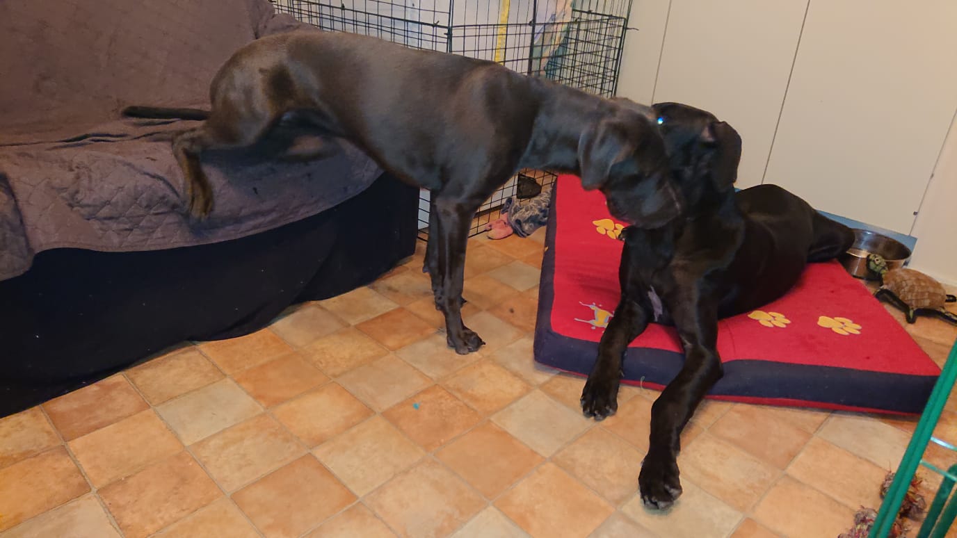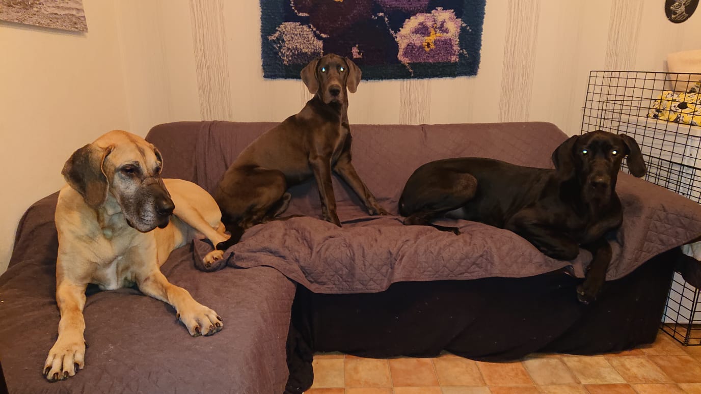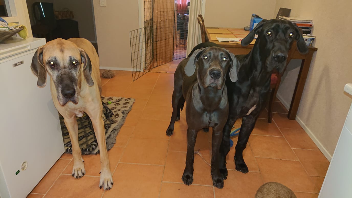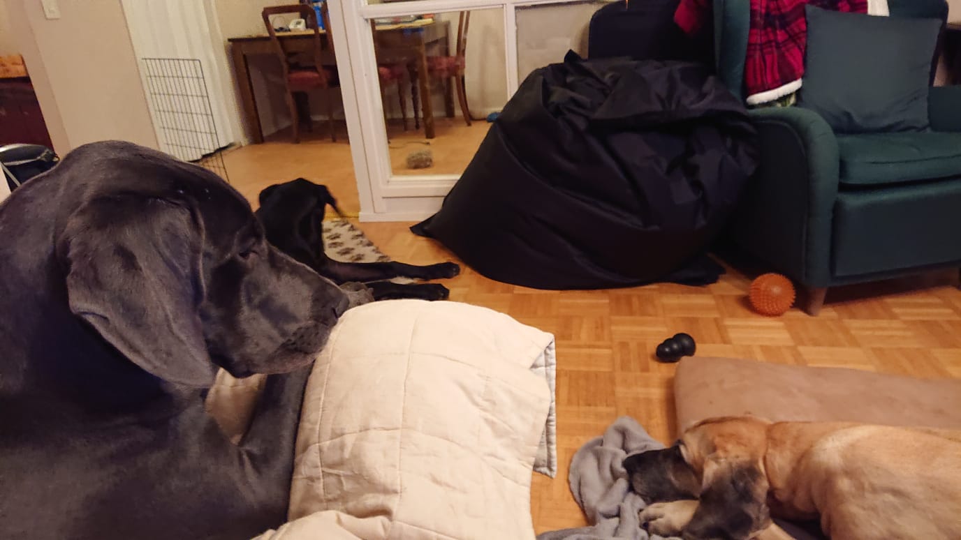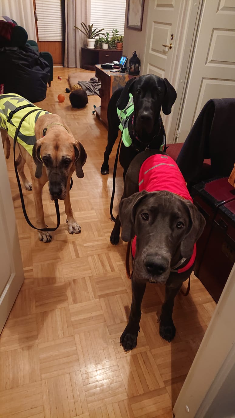 Sain lainata Niinan vierassänkyä yön yli, ja seuraavana päivän puolella jätin Niinan kolmen doggin kanssa viettämään etätyöpäiviä kotiin. Sain pitkin matkaa kuvareportaaseja siitä, miten hoidokilla sujuu. 🙂