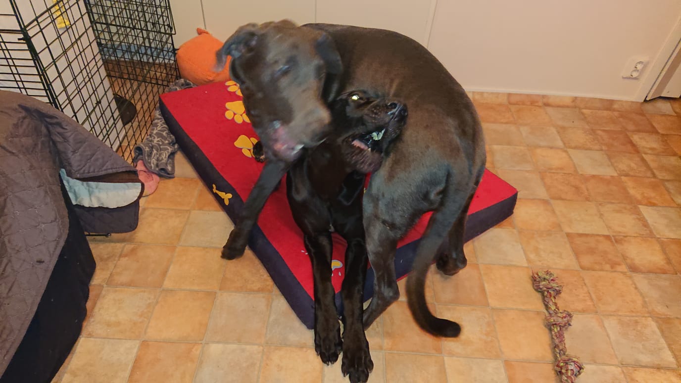 Jossain vaiheessa koirakolmikko on osannut asettua ihan alloilleenkin. Sain tästä myös videopätkää saatteella “tätä et usko, vaikka näet :O :D”
