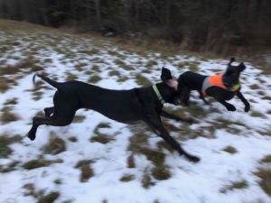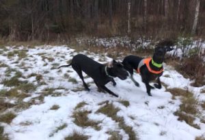 Tätä aamulenkkeilyä päästiin testamaan perjantaina, kun suunnattiin Heidin ja Dannyn kanssa metsäilemään heti aamun valostuttua (eli klo 9). Koirilla oli taas hyvä meininki ja vauhti päällä. Jossain loppupuolella lenkkiä huomattiin, että lumeen jää pieni verijälki – nyt on jommalla kummalla tassussa haava tai kieleen purtu reikä. Kohde oli helppo paikallistaa kotona: Nemi hoiti vasemman etutassun anturaan tullutta vekkiä suurella antaumuksella. Se hoiti haavaa niin suurella intohimolla, että minun piti ihan laittaa tossu jalkaan hoitotoimenpiteiden estämiseksi. Olen pistänyt haavaan hunaja-kuusenpihkasalvaa ja se tuntuukin parantavan haavaa hyvällä menestyksellä.