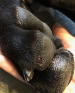 Onneksi jälki on suhteellisen pieni ja sijaitsee ihan polkuanturan ulkosyrjällä – tassuhaavat kun ovat tosi viheliäisiä hoitaa ja hitaita paranemaan. Mutta paremmalta näyttää jo!