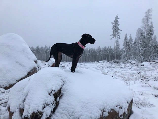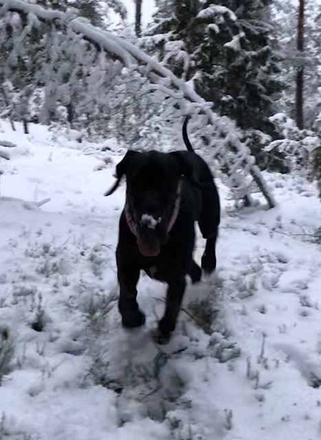 Tässä vähän kuvamaistiaisia Nemin tämänvuotisesta ensipuraisusta lumihankiin: