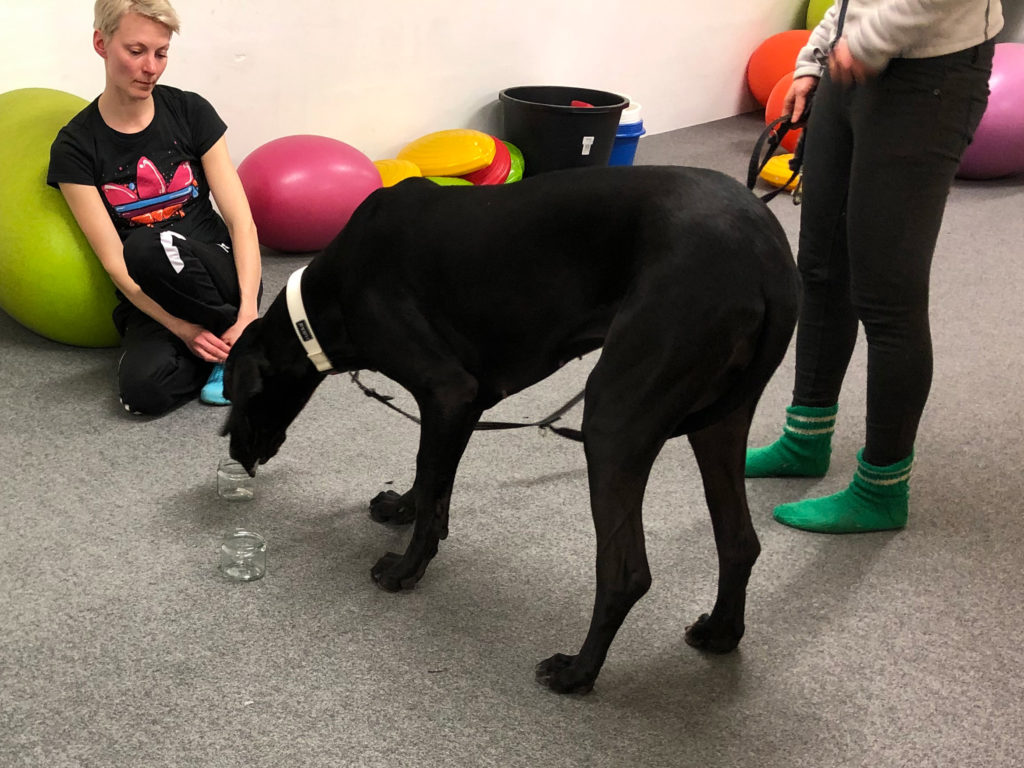 Toisella kierroksella mukaan otettiin hämypurkki, eli purkki ilman tuoksuja. Purkkien paikkaa ja järjestystä vaihdettiin, ja koiralle kerrottiin seuraavaksi, että sen pitäisi löytää nimenomaan se hajustettu purkki. Nemi onnistui kääntyilemään sen verran, että monesti se käveli suoraan hajustetulle purkille. Saimme onneksi myös onnistuneet suoritukset siitä, että Nemi tsekkasi ensin tyhjän purkin, mutta jäi sitten nuuskuttelemaan oikean purkin luo. Hyvä Nemi!