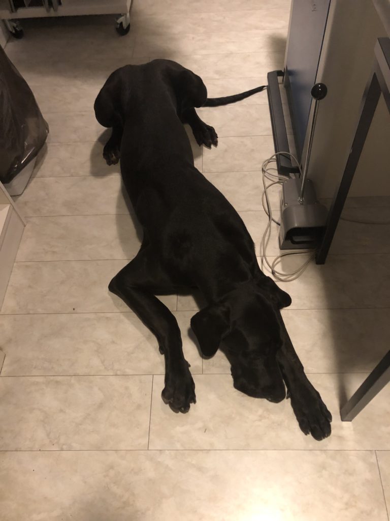 Se, mikä oli jännä huomio, oli että takajaloissa polvilumpion yläpuolella oli havaittavissa symmetriset hiuksen hienot linjat. Ne näyttivät kuin hiusmurtumilta. ELL kysyi, että onko Nemillä ollut kasvukipuja. Mitäs tähän muuta kuin naurahtamaan, Nemiä ikänsä hoitaneelle ja tämän sairaushistorian läpikotaisin tuntevalle lääkärille, että eihän sillä nyt ole HODia suurempia kasvukipuja ollut. Lääkäri viittasi kuitenkin tässä kohtaa panosteiittiin, sillä hän jatkoi että tuo kuvissa näkynyt muutos jaloissa ei pitäisi olla tullut HODista vaan voisi olla panosteiitin, eli ns. kasvukipujen aiheuttama muutos. Tämän oireilu on voinut jäädä huomaamatta HODin, ja sen johdosta annetun pitkän tulehduskipulääkityksen vuoksi. Että onhan sitä nyt mahtunut kaikenlaista yhden pienen tanskandoggin kasvukauteen. :/ Edelleen; onneksi tuo kaikki on nyt takanapäin! <3