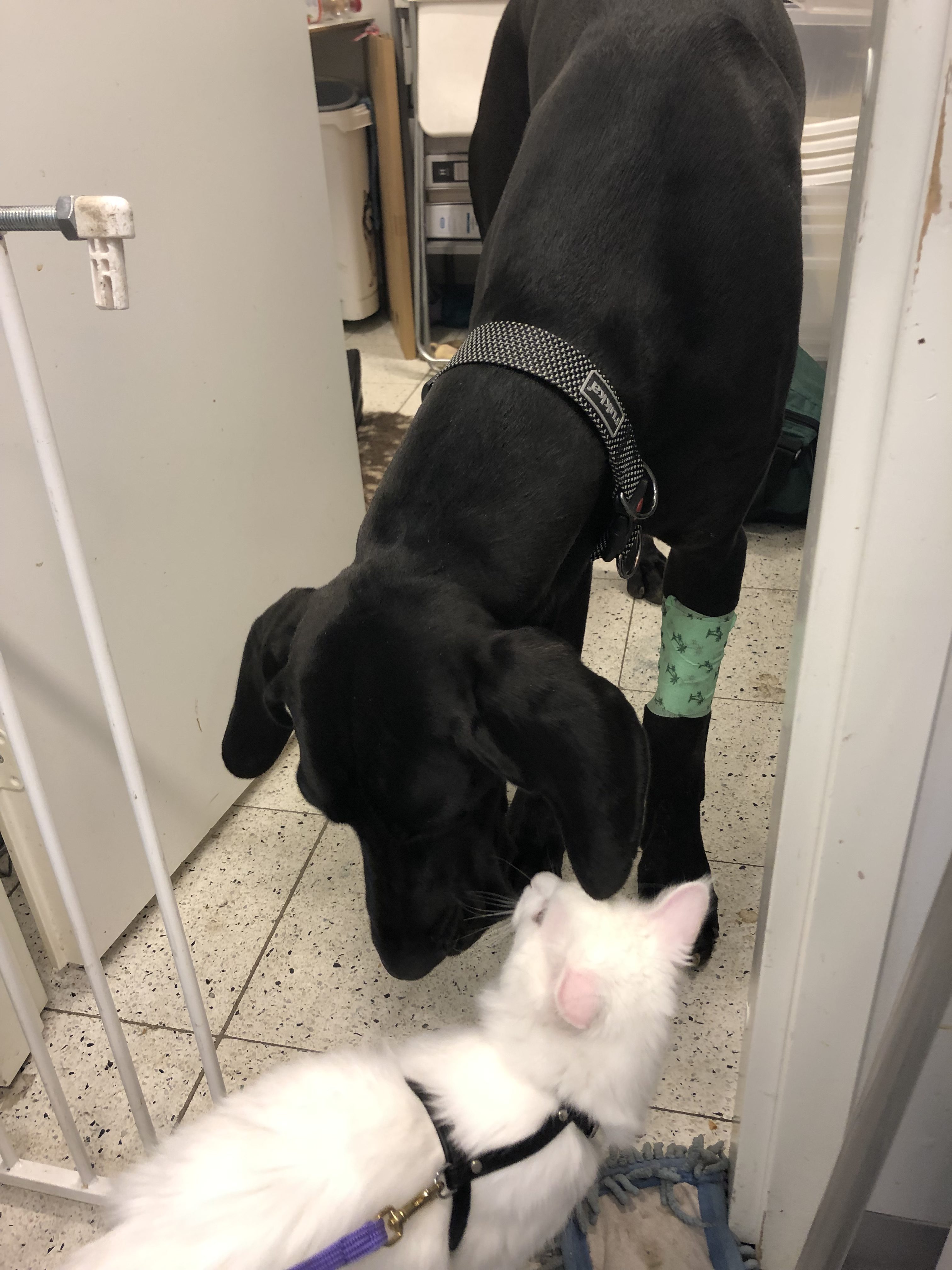 Se, mikä oli jännä huomio, oli että takajaloissa polvilumpion yläpuolella oli havaittavissa symmetriset hiuksen hienot linjat. Ne näyttivät kuin hiusmurtumilta. ELL kysyi, että onko Nemillä ollut kasvukipuja. Mitäs tähän muuta kuin naurahtamaan, Nemiä ikänsä hoitaneelle ja tämän sairaushistorian läpikotaisin tuntevalle lääkärille, että eihän sillä nyt ole HODia suurempia kasvukipuja ollut. Lääkäri viittasi kuitenkin tässä kohtaa panosteiittiin, sillä hän jatkoi että tuo kuvissa näkynyt muutos jaloissa ei pitäisi olla tullut HODista vaan voisi olla panosteiitin, eli ns. kasvukipujen aiheuttama muutos. Tämän oireilu on voinut jäädä huomaamatta HODin, ja sen johdosta annetun pitkän tulehduskipulääkityksen vuoksi. Että onhan sitä nyt mahtunut kaikenlaista yhden pienen tanskandoggin kasvukauteen. :/ Edelleen; onneksi tuo kaikki on nyt takanapäin! <3