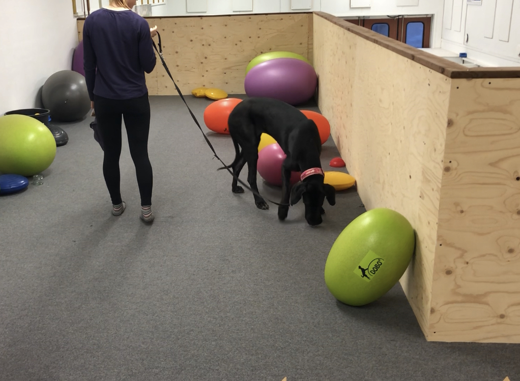 Se, mikä oli kivaa, oli että Nemi oli hyvin rentoutuneen oloinen tällä kertaa. Odottaessamme omaa vuoroamme alakerrassa, minä vähän agitoin ja härkin Nemiä innostumaan ja leikkimään, ja tyttö häntä heiluen lähti mukaan riehuttamiseeni. Yläkerran treenitilaan mentiin kovalla tohinalla ja tekeminen oli nyt paljon rennompaa, ja sitä oli kiva katsella. Välitön kastumispelko on ilmeisesti vihdoin voitettu. 🙂