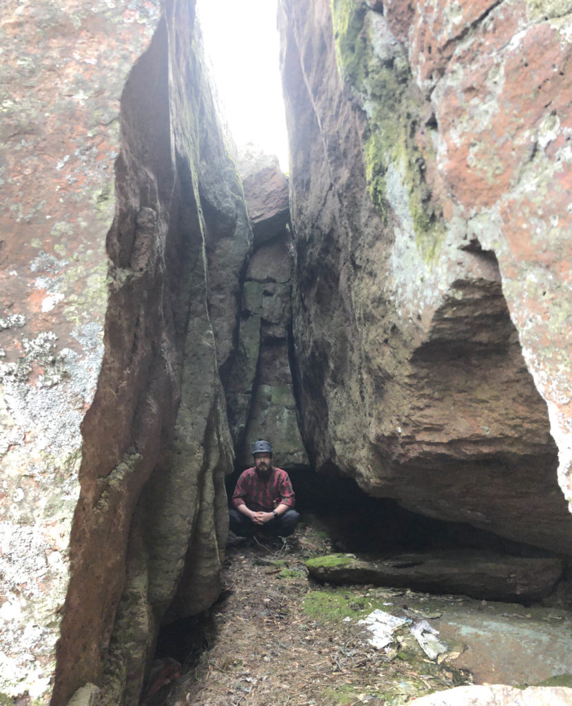 Halkeama oli koko matkalta ylös asti auki, se oli yhden miehen levyinen ja leveni pääkallion alla jälleen sateelta pitäväksi syvennykseksi. Lisäksi takana vasemmalla oli vielä toinen, pieni luola.
