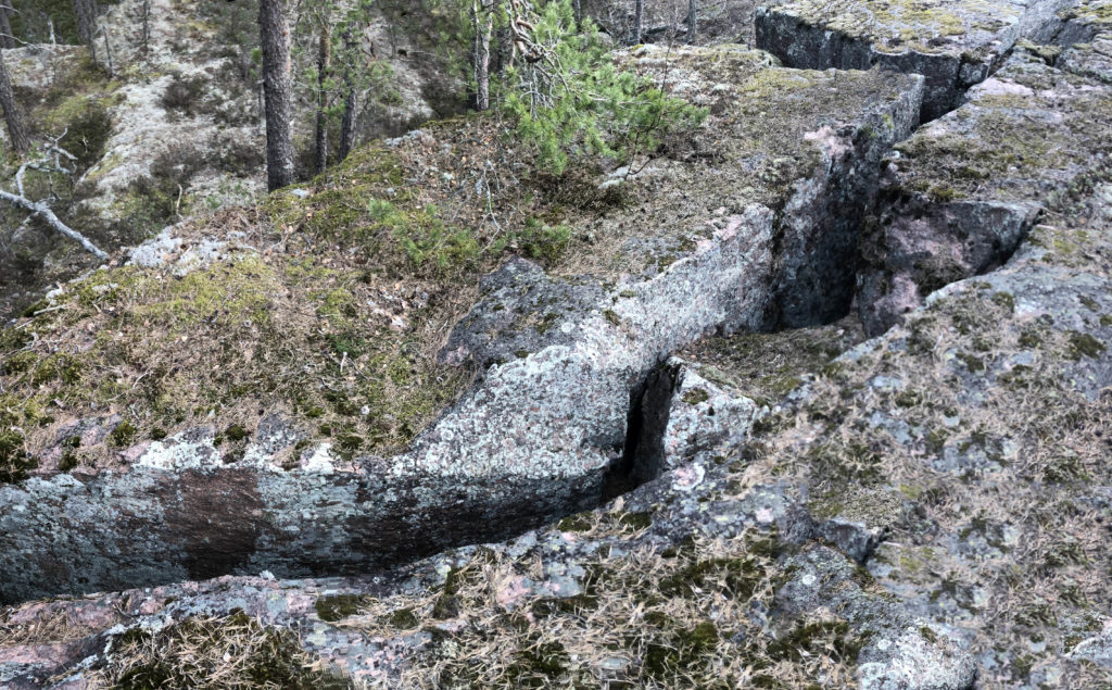 Kun tätä hetken ihasteltiin, huomattiin viereisen kallionkielekkeen välistä pilkottava halkeama. Se oli piiloutunut hienosti isohkon porraskiven taakse, ja antoi viitteitä siitä, että sisältä saattaisi löytyä jotain hienoa… Ja voi kyllä!