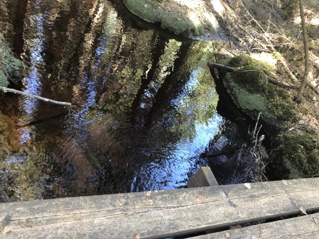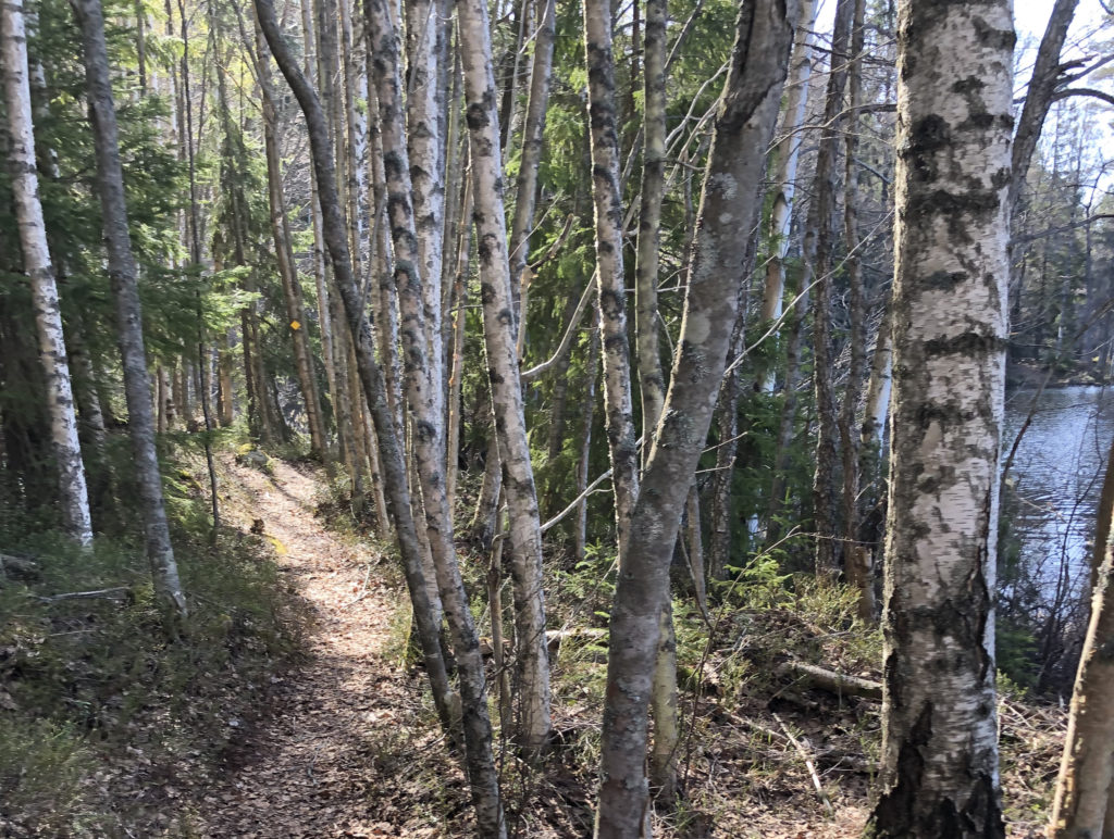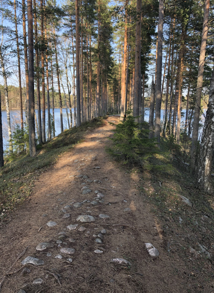 Tämä retkeilyalue jää mieleen paitsi mielenkiintoisen nimensä, mutta myös persoonallisen harjumaiseman sekä poikkeuksellisen kirkkaiden vesien vuoksi. Reitillä oli pituutta kuusi kilometriä, ja se kierteli Iso-Melkuttimen ympäri aivan rannan tuntumassa. Sää oli superhieno, ja muita ulkoilijoita oli ymmärrettävästi aika paljon liikenteessä. Pari koiraihmistä varoitteli meitä nähneensä polulla kyitä, mutta me ei niihin onneksi törmätty.