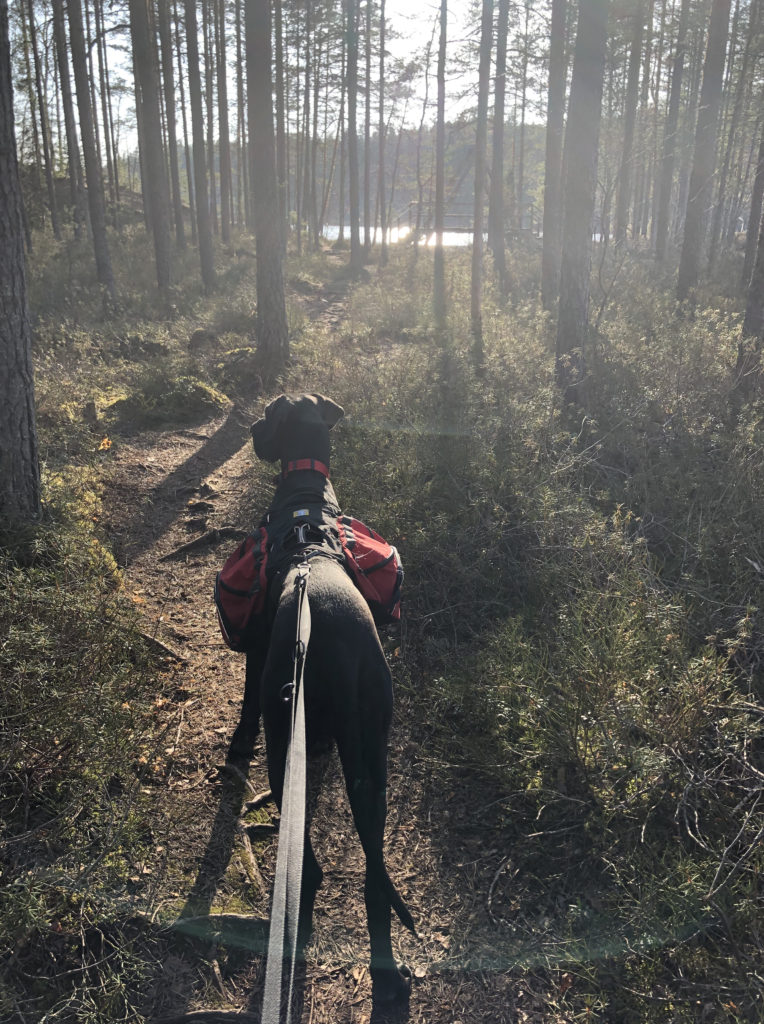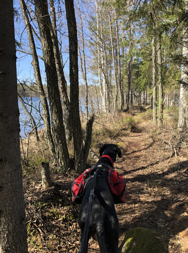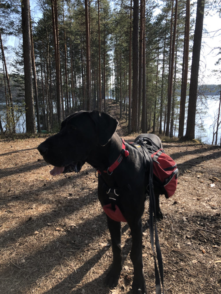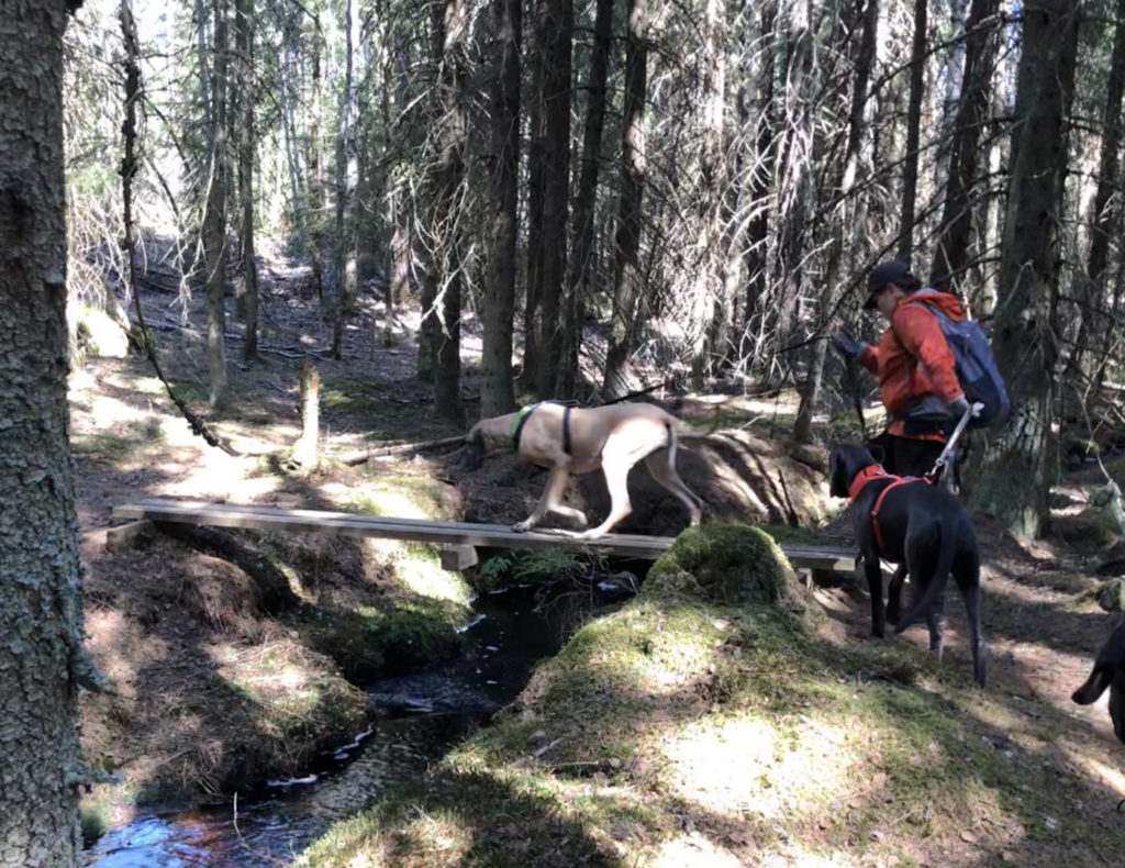Kävely itsessään sujui oikein mallikkaasti: Nemi kuunteli todella hienosti ohjeita ja käskyjä. Siltojen ylittäminen sujui tottuneesti, ja myös toiset ulkoilijat koirineen ohitettiin ilman suurta draamaa. Huomion arvoista oli myös se, että päivä oli sen verran lämmin, että Nemi suostui myös juomaan luonnonvesistä – ihan vallan tassujen kastumisen uhallakin! 😉 Myös Niinan ja likkojen kulku sujui pääsääntöisesti oikein hyvin: Pennihän nyt on vuorenvarma konkaritallustelija, mutta kovasti aktiivinen, vuoden ikäinen Hekla-tornado tarvitsee vielä vähän ikää ja älliä päähänsä 🙂 Ennakkoon pohdituista kauhukuvista ärräpäiden täyteisistä lenkeistä oltiin kaukana, ja kävely aurinkoisen lämpimässä säässä ja upeissa maisemissa oli kertakaikkisen ihanata!